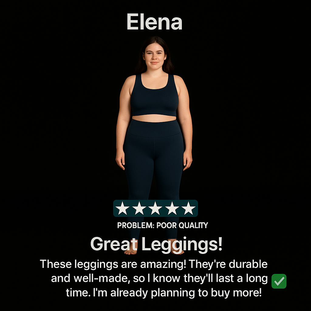 Our leggings are crafted from a premium blend of nylon and spandex, giving them the perfect balance of stretch, softness, and durability. The fabric is breathable, moisture-wicking, and designed to hold its shape wash after wash—so you get all-day comfort with a flattering fit. Best of all, they’re 100% squat-proof and non-see-through, so you can move with total confidence.